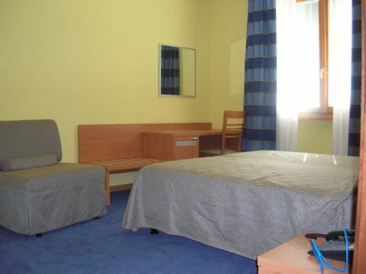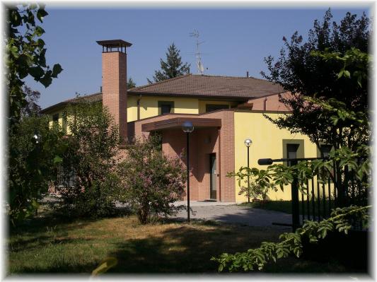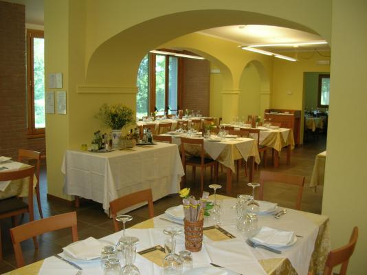 Immerso in mezzo al verde, l'edificio completamente ristrutturato ospita 80 coperti per la ristorazione e 16 posti letto in 8 came